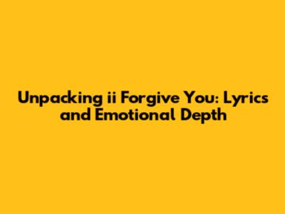 Unpacking 'ii Forgive You': Lyrics And Emotional Depth