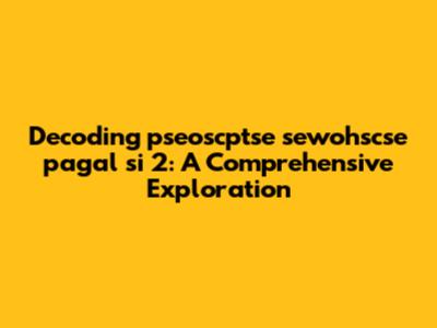 Unveiling The Enigma: Decoding 'pseoscptse Sewohscse Pagal Si 2'